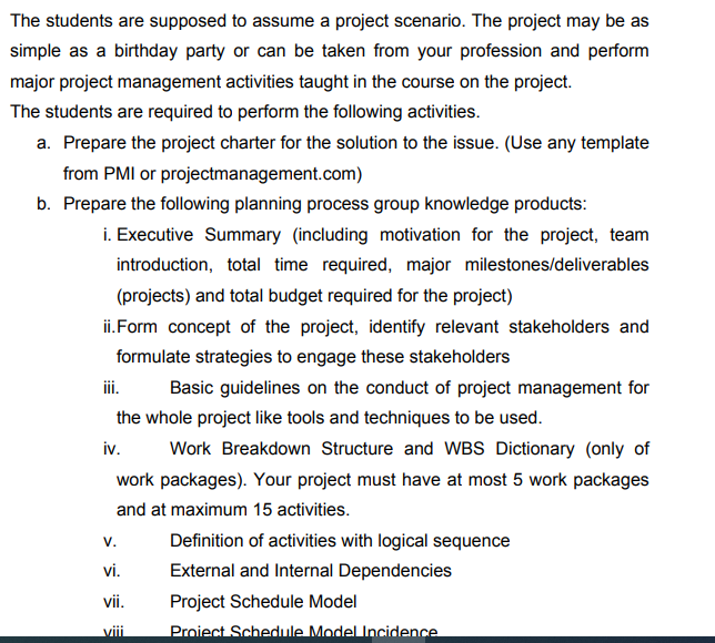 Solved The Students Are Supposed To Assume A Project Chegg Com